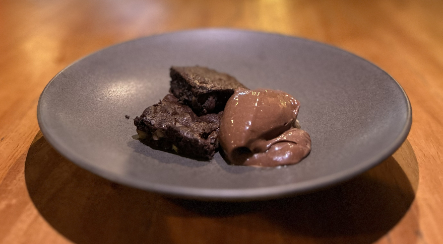 De sobremesa, a boa é o brownie com ganache de chocolate.