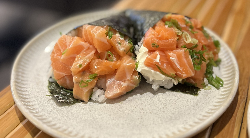 De sushi, o gunkan de salmão.