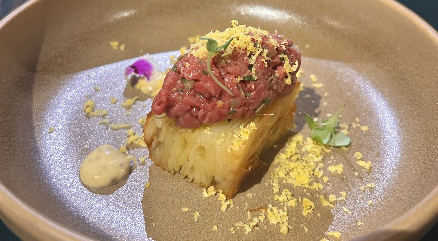 O steak tartar veio super bem temperado, com um toque cítrico e em leito de batatas laminadas. Perfeito!
