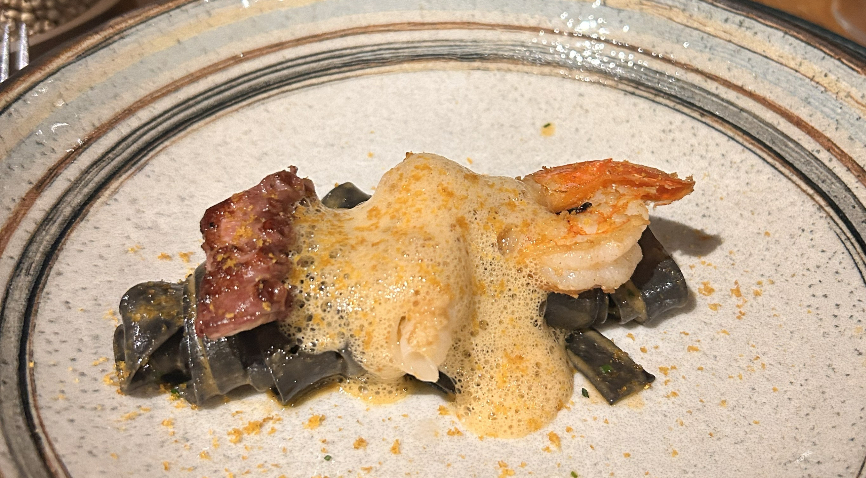 O fetuccine com frutos do mar, envolto em molho leve de vinho branco.