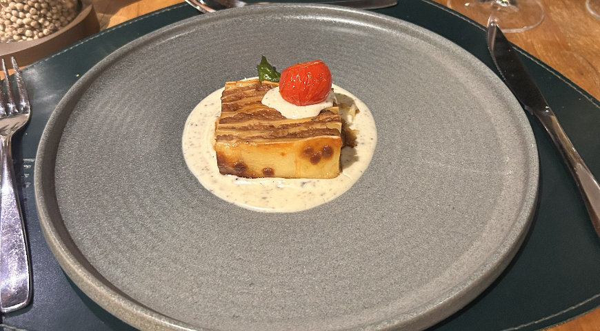 A lasanha de vitelo estava divina, com essa fonduta gratinada de grana padano. Humn, deu água na boca!